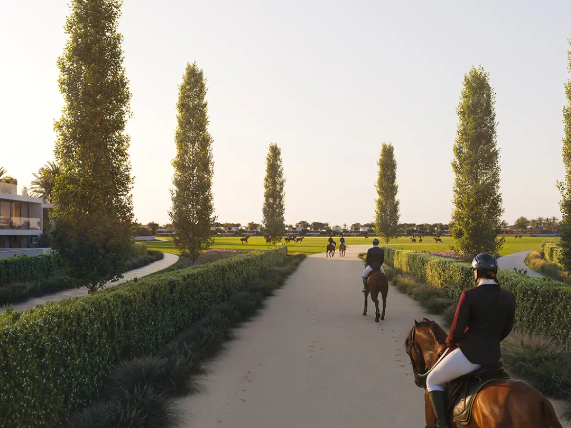 The Grand Polo Club & Resort’s master plan was created to achieve a harmonious balance between the lifestyle tenets of recreation, leisure, nature, connection, and wellness. The green areas connect the apartments and loop around the layout, creating a sense of community and belonging while maintaining the equestrian prestige at its core.